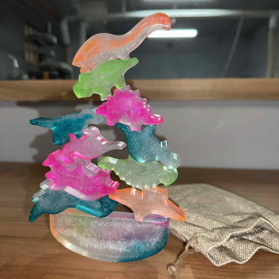 Amusez-vous à empiler ces adorables dinosaures en résine époxy sans les faire tomber !
