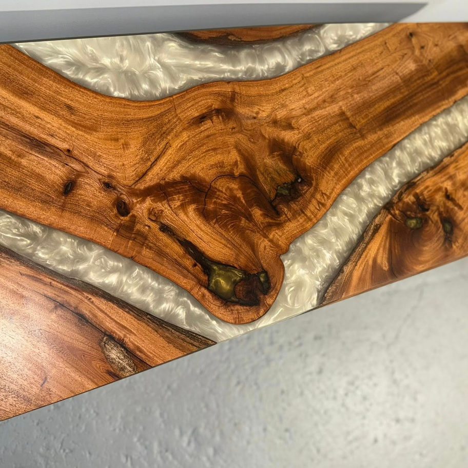 Une création unique en époxy or et blanc sur bois massif, qui attire tous les regards.