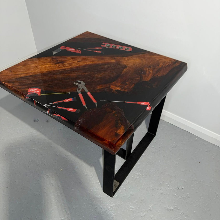 Une table à café unique, parfaite pour le bureau ou la maison, avec des outils Milwaukee intégrés pour un style 100% audacieux.